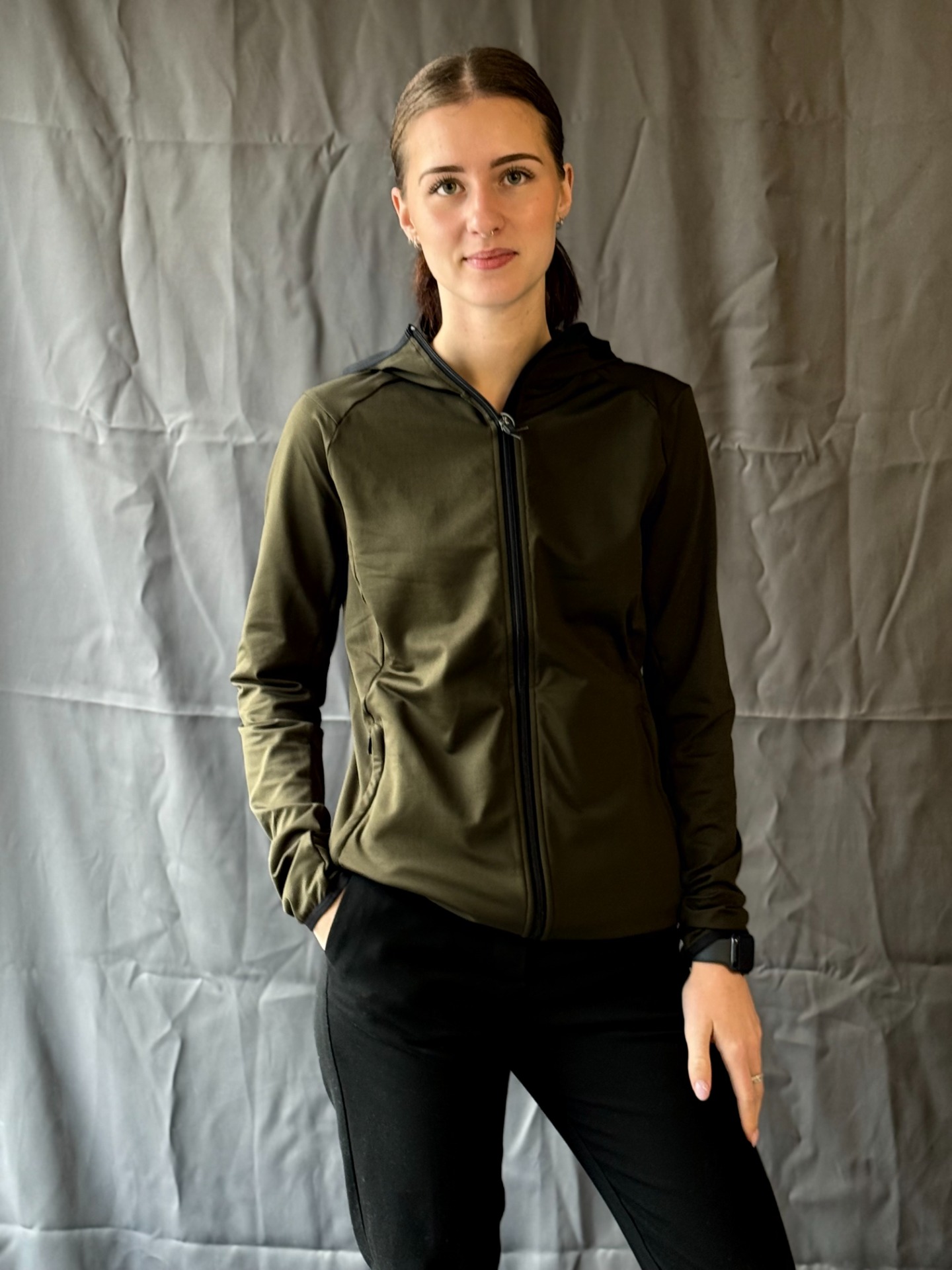 Sportig huvtröja med dragkedja i mjukt stretchmaterial med borstad insida, perfekt för en aktiv vardag eller vid sportsakitiviteter. Quick dry-komfort och YKK dragkedja fram och i sidfickorna. Reflextryck på fram- och baksida.