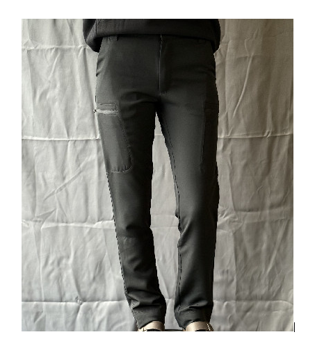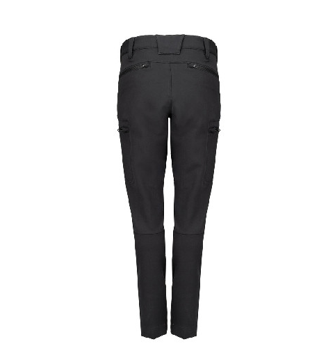 Servicebyxa i full stretch med modern, smal passform. Byxan har ett insytt, justerbart, stretchband i midjan för komfort, även silikonband för att hålla byxan på plats. Öppna sidfickor på båda sidor. Benfickor på båda sidor som försluts med dragkedja, även bakfickor med dragkedja. Bredare bälteshälla baktill för att undvika tryck från bälte vid ryggslutet. Dold midjeknapp. Byxan kan förlängas 5 cm genom ett utvik i benslutet.
