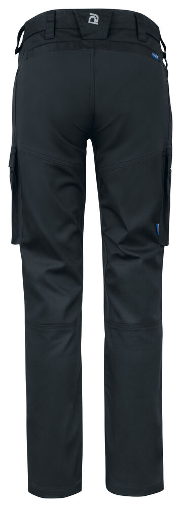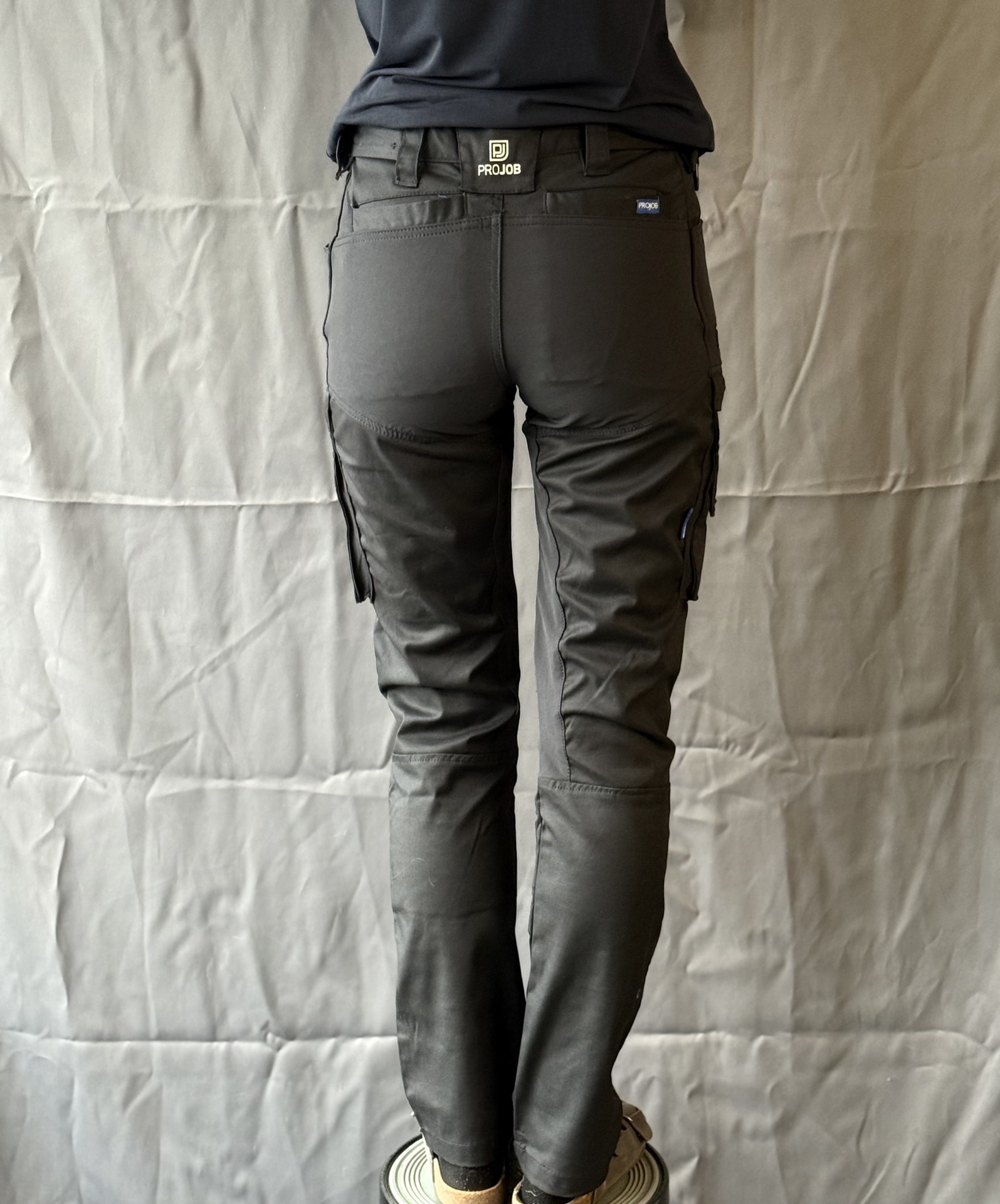Servicebyxa i full stretch med modern, smal passform vilket gör att byxan upplevs rörlig trots slimmad passform. Benfickor med övervidd och dragkedja på båda sidor, även telefonficka på båda sidor. Tumstocksficka på höger sida. Infällda bakfickor. Bredare bälteshälla baktill för att undvika tryck från bälte vid ryggslut. Förböjda knän. Knäskyddsfickor som går att reglera i två höjder, öppning inifrån. D-ring fram. Dolda fästen för hängfickor i linningen (ref. art 9042). Dold midjeknapp.