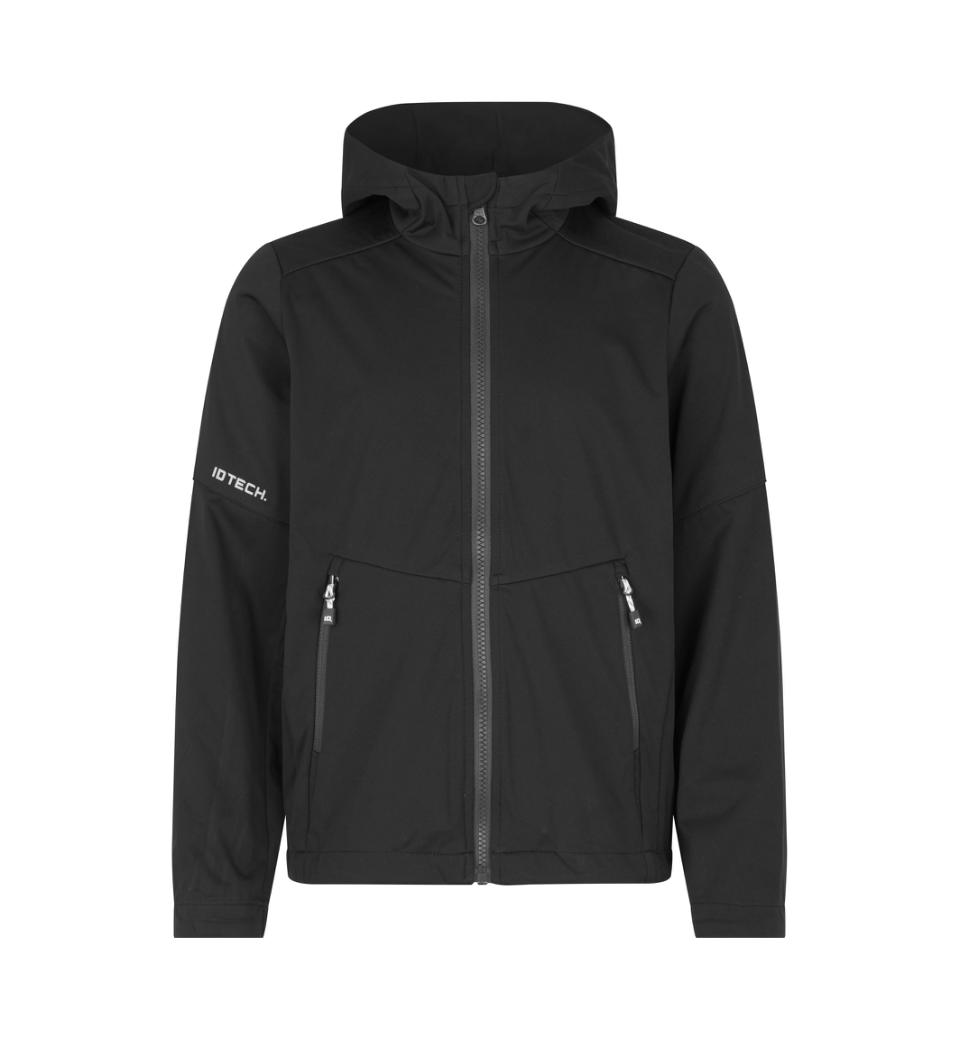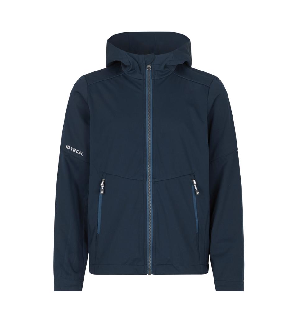 Lätt soft shell jacka i ID Tech® trelagers membrankvalitet med stickad yta, som är lätt och töjbar. Smarta blixtlåsdetaljer och kontrastdetaljer på insidan. Huvan har skärmförstärkning för optimal funktion. Två sidofickor med blixtlås. Ärmar med liten elastisk insats. Invändig reglering med snöre i sidan skärmar för blåst och drag. Åtsmitande modell med smal passform.