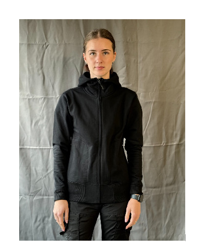 Vår storsäljare, en favorit som alla gillar. Med en kombination av hög krage, hood och cardigan får den attityd. Den rena designen förstärks med de dolda fickorna i sidan, och den extra breda mudden gör att den sitter bra även när du rör dig mycket. Mycket hög kvalitet som håller form och färg fantastiskt väl. Blunda och tänk dig den med ditt eget märke eller tryck på – riktigt snyggt, som du har glädje av länge.