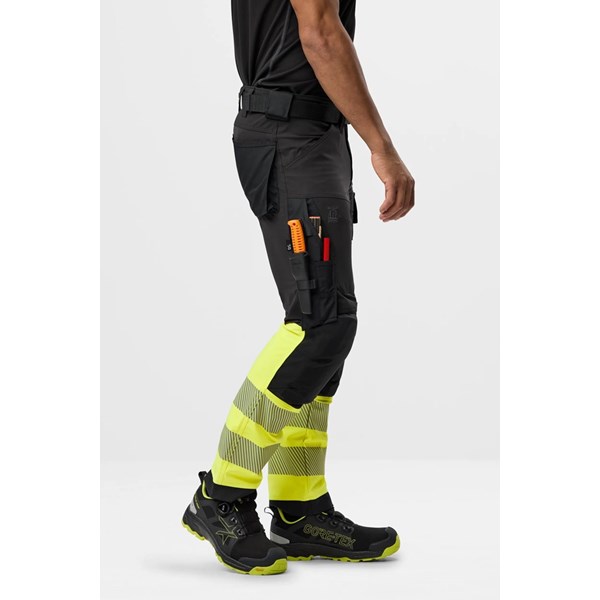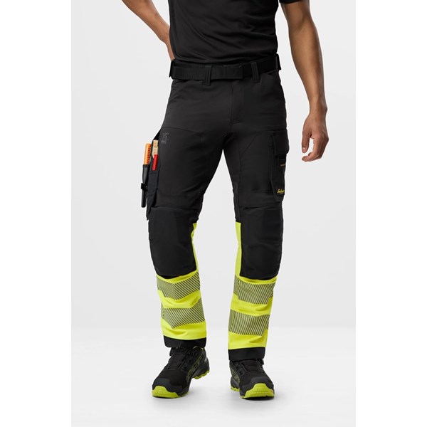 Figurnära helbyxor i ett fullstretchmaterial med segmenterat reflextryck. De är certifierade enligt EN ISO 20471, och ger god komfort, rörlighet och tillförlitligt skydd i dåliga ljusförhållanden.
